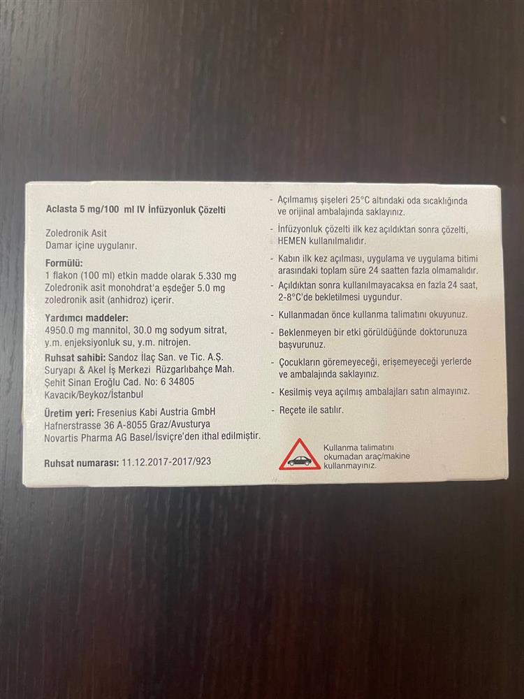 Aklasta (zoledronic acidum) 5mg/100ml fl 100ml