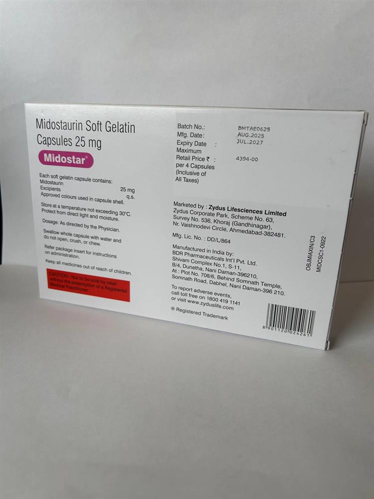 Мидостар (Midostar) – это лекарственное средство, содержащее действующее вещество мидостаурин (25 мг), которое используется для лечения определенных видов рака крови.